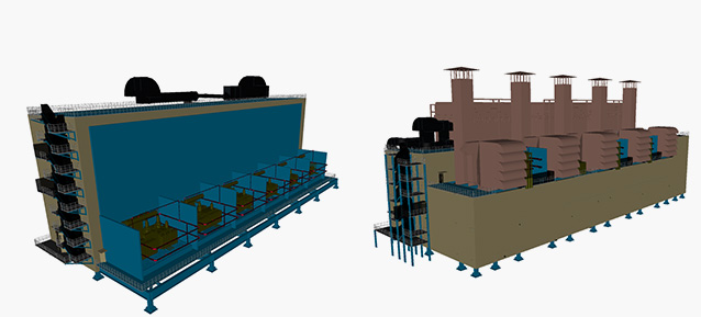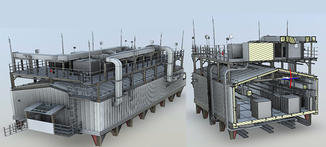 PGM模块将为LNG2工厂提供强大的电力支持,每个模块发电功率为24000KW。海仓科技参与其中4套发电模块和1套配电模块的设计工作。