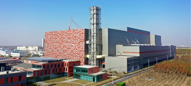 本工程日处理生活垃圾3000吨,配置4条750吨/日垃圾焚烧处理线及烟气处理设施,配套两台65MW中温次高压纯凝式汽轮发电机组。设备年工作时数为8000小时,实际单炉高峰处理规模可达1000吨/日,目前单炉处理规模是世界先进水平。