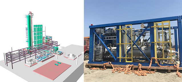 本项目6个PAU模块和5个泵撬。海仓科技参与并完成了2个装置布置及模块化设计工作。