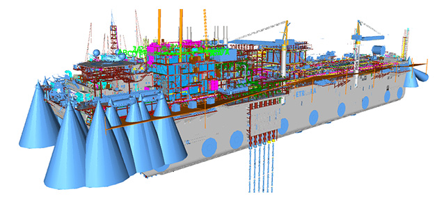 该装置能够处理天然气和石油/凝析油,并在不需要进一步陆上处理的情况下进行销售。该FPSO的生产能力为每天1600万立方米天然气,预计平均每天出口1400万立方米天然气。BM-C-33 FPSO项目将采用联合循环技术来降低二氧化碳强度,预计在其使用寿命内的平均二氧化碳强度将低于每桶油当量6公斤。海仓科技负责该项目艏部+上建全专业详设及生产设计