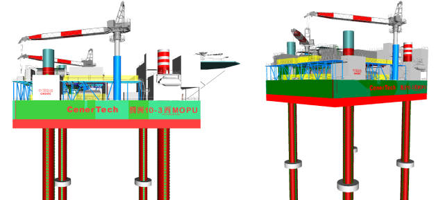 涠洲10-3油田西区自安装生产处理平台,具备油气水处理、原油商业计量及外输等多重功能,设计使用年限长达25年,作业水深达45米,自持力为14天,并已入级中国船级社。本平台是海油发展用于边际油田开发“小蜜蜂”系列中技术较为复杂的MOPU平台,本建造项目以工程+科研的形式打造智能化MOPU。